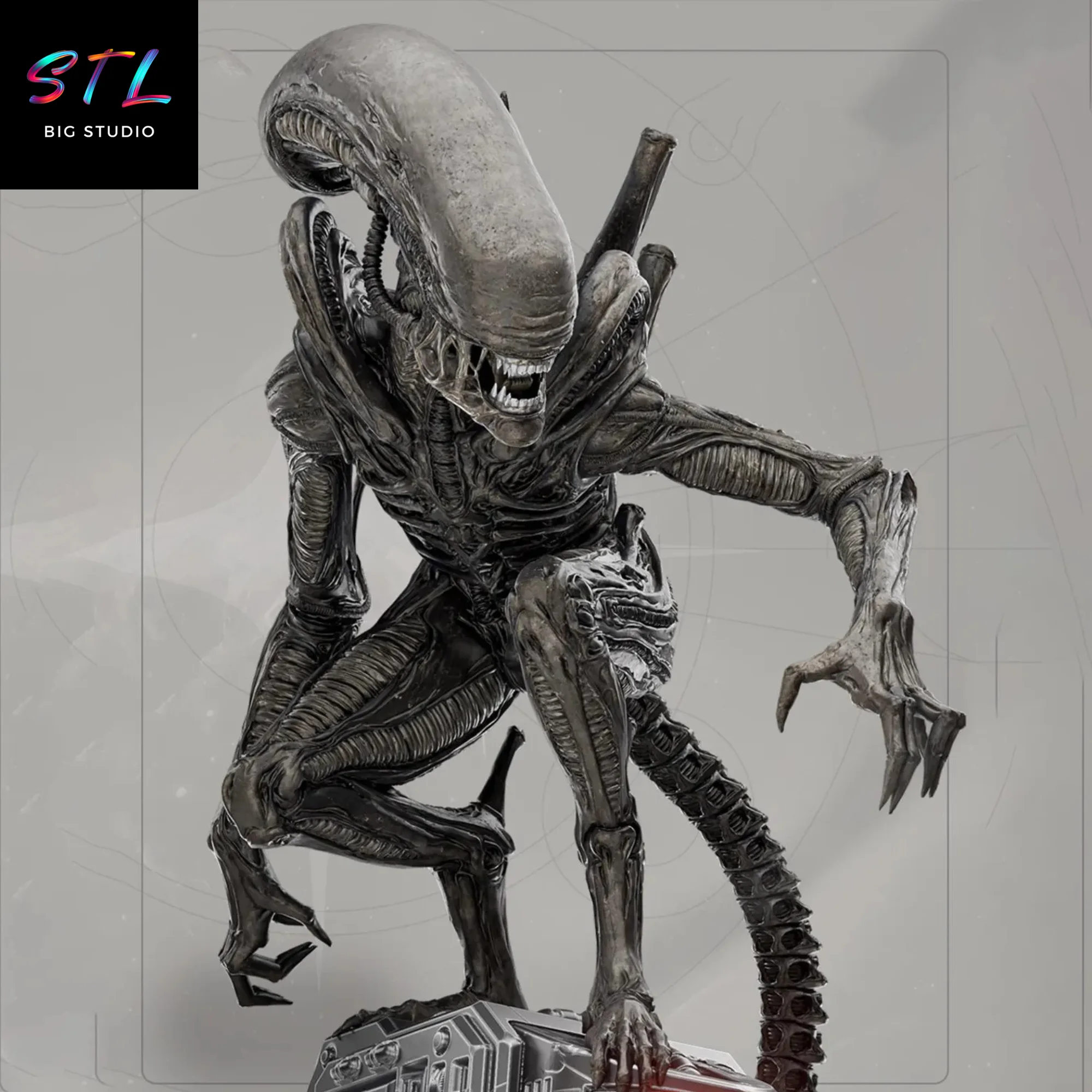 - Xenomorfo STL altamente detallado, con anatomía fiel y texturas complejas que resaltan incluso en escalas pequeñas.