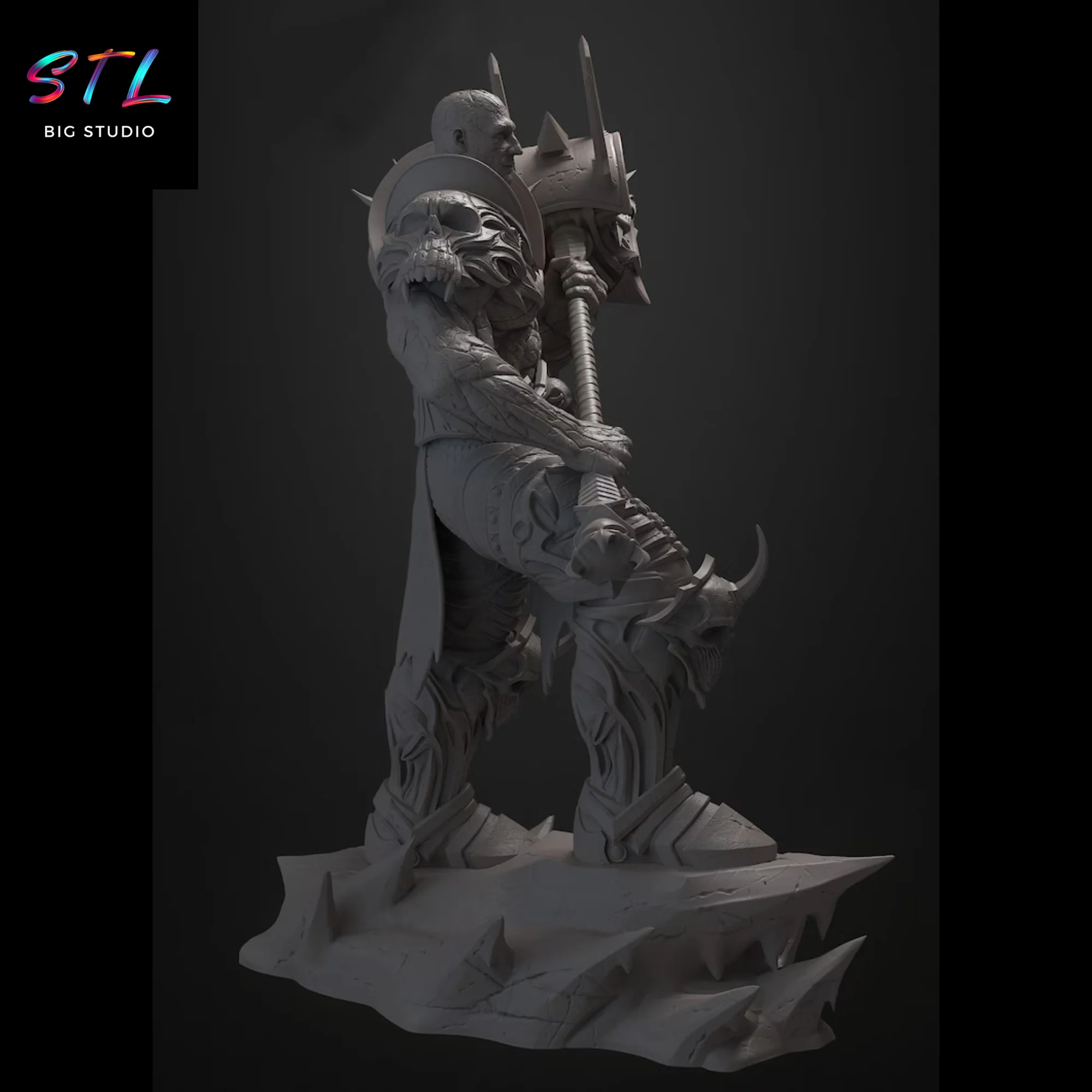 Este modelo 3D recrea a Bolvar con un nivel de detalle extremo: su armadura fragmentada, los cráneos tallados que adornan cada placa y la textura rasgada de su piel cuentan una historia antes incluso de ensamblarlo. El enorme martillo, cargado de motivos rúnicos y espinas, refuerza la esencia oscura del personaje y convierte la escena en un despliegue de poder abrumador. La base rocosa, con grietas y picos helados, añade dinamismo y da la sensación de estar frente a una estatua surgida directamente del mismísimo Trono Helado.