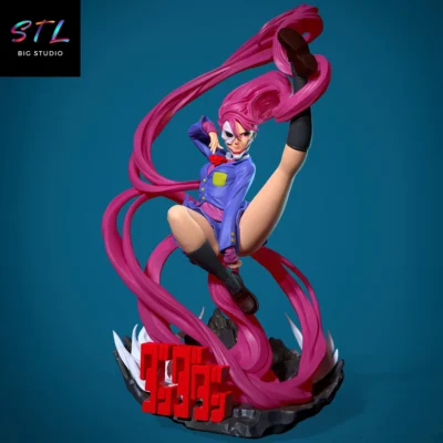 Este archivo STL de Aira Shiratori, uno de los personajes más icónicos y explosivos de Dandadan, captura a la perfección su personalidad intensa, provocadora y absolutamente impredecible. La figura 3D representa a Aira en una pose dinámica y extrema, con una patada aérea imposible y su larguísima melena rosada envolviendo toda la composición, transmitiendo movimiento, agresividad y presencia desde cualquier ángulo.