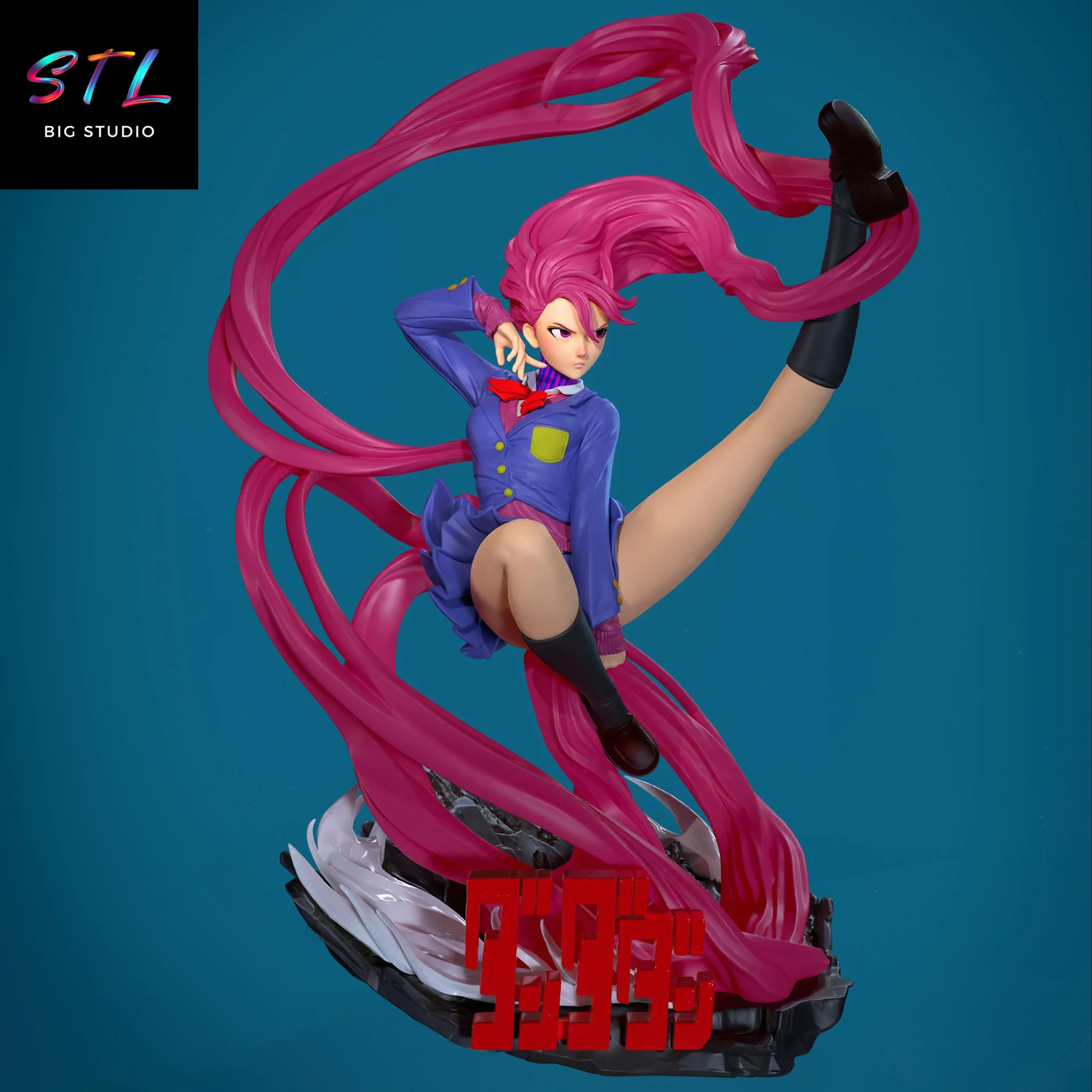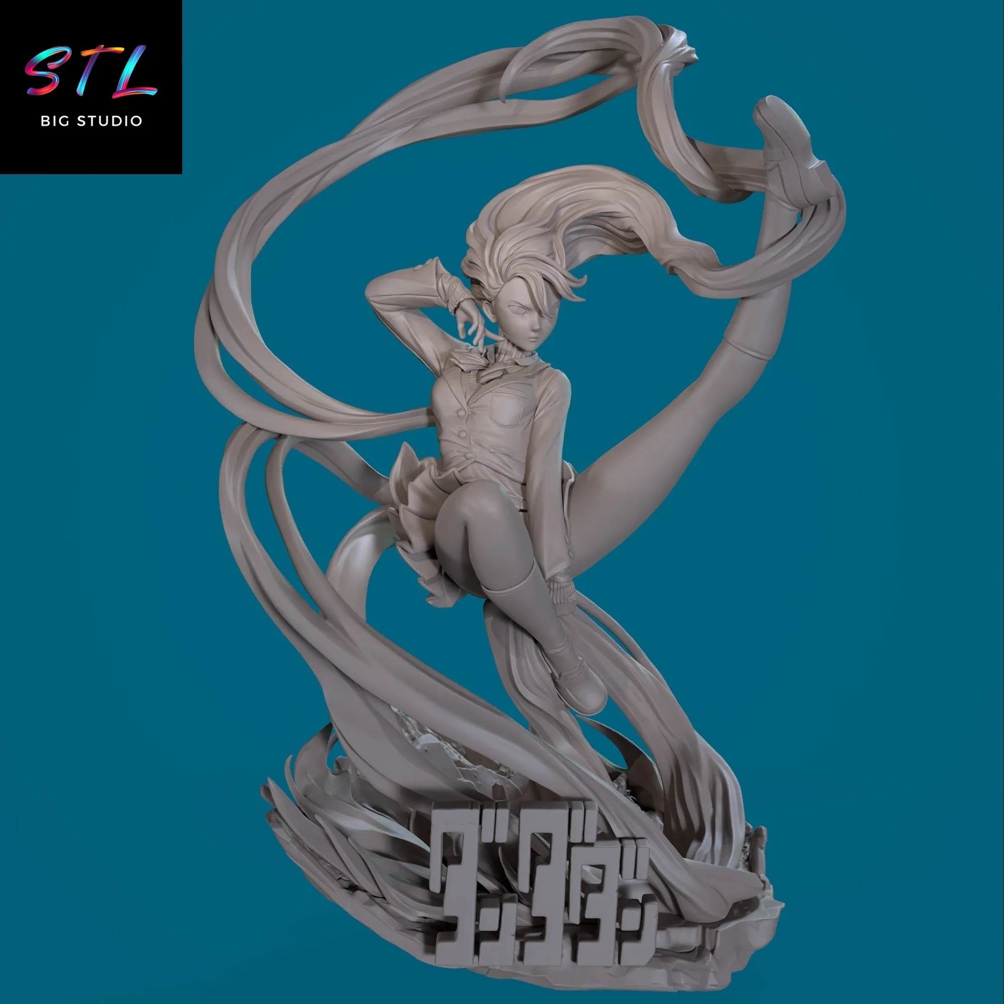 La escultura aprovecha al máximo el dinamismo del personaje: el cabello fluye como un arma más, el cuerpo se retuerce en pleno ataque y la base acompaña la escena con un diseño agresivo y contundente. Es un STL que no busca pasar desapercibido, sino representar a Aira Shiratori tal y como es en la obra original: intensa, dominante y sin miedo a imponerse.