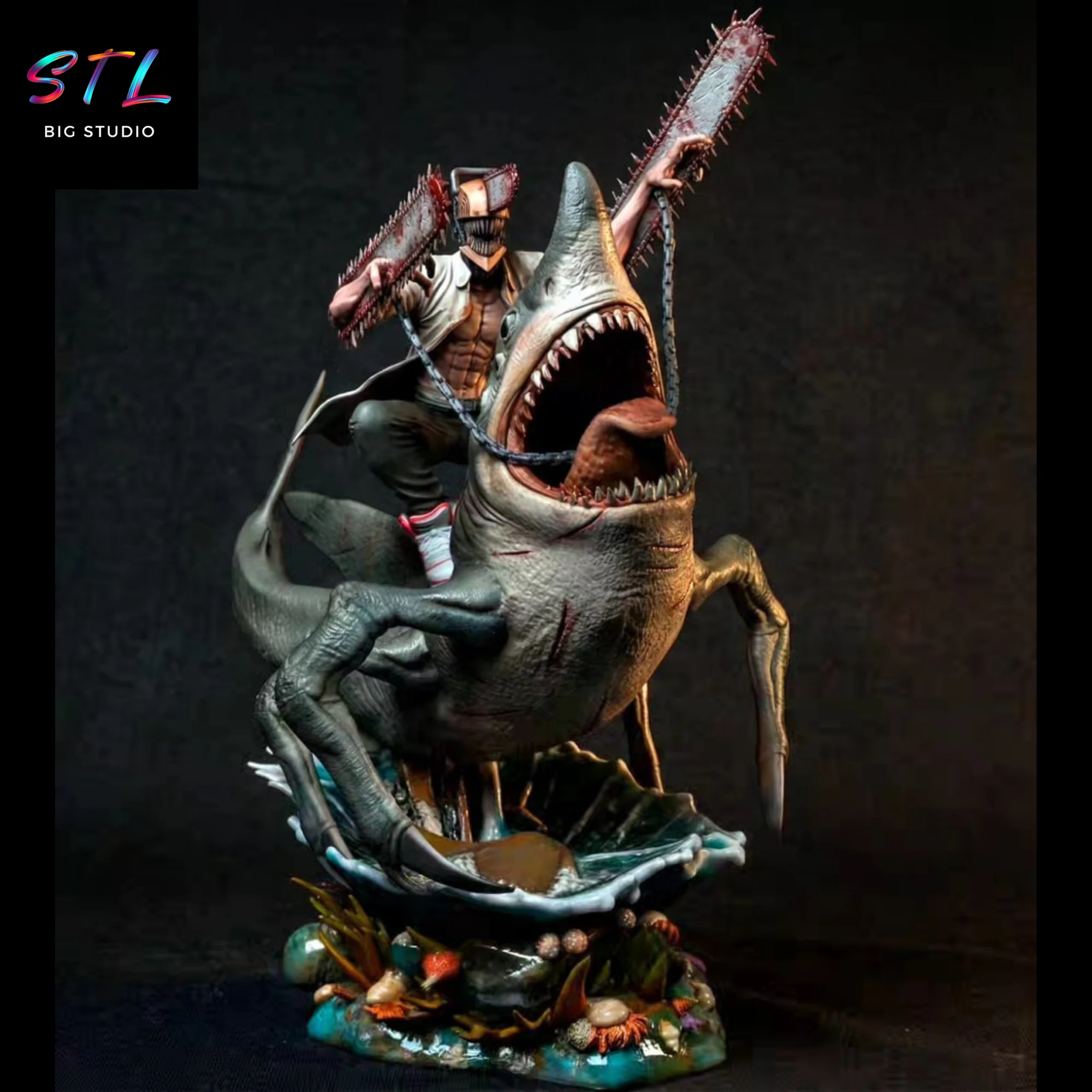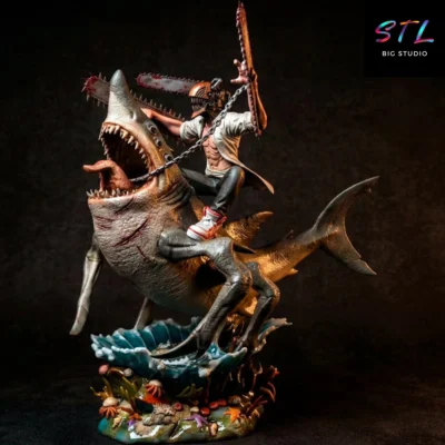 La locura, la velocidad y la violencia sin frenos de Chainsaw Man se desatan en este espectacular modelo STL protagonizado por Denji y Beam. Una escena 3D salvaje que captura uno de los dúos más caóticos y memorables de la serie, con Denji desatado, motosierra en alto, cabalgando sobre el demonio tiburón en plena embestida.