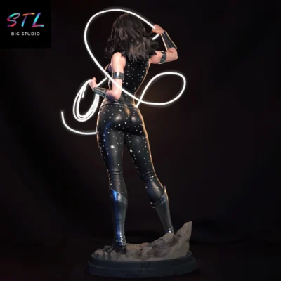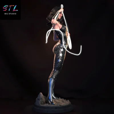 The STL model depicts Donna Troy (Wonder Girl) wearing her iconic star-spangled suit, wielding her lasso in full action, conveying movement and absolute combat control. The balanced stance, confident expression, and anatomical detailing turn this 3D figure into a piece that stands out for both its dynamism and heroic aesthetic, designed to shine as a centerpiece in any collection.