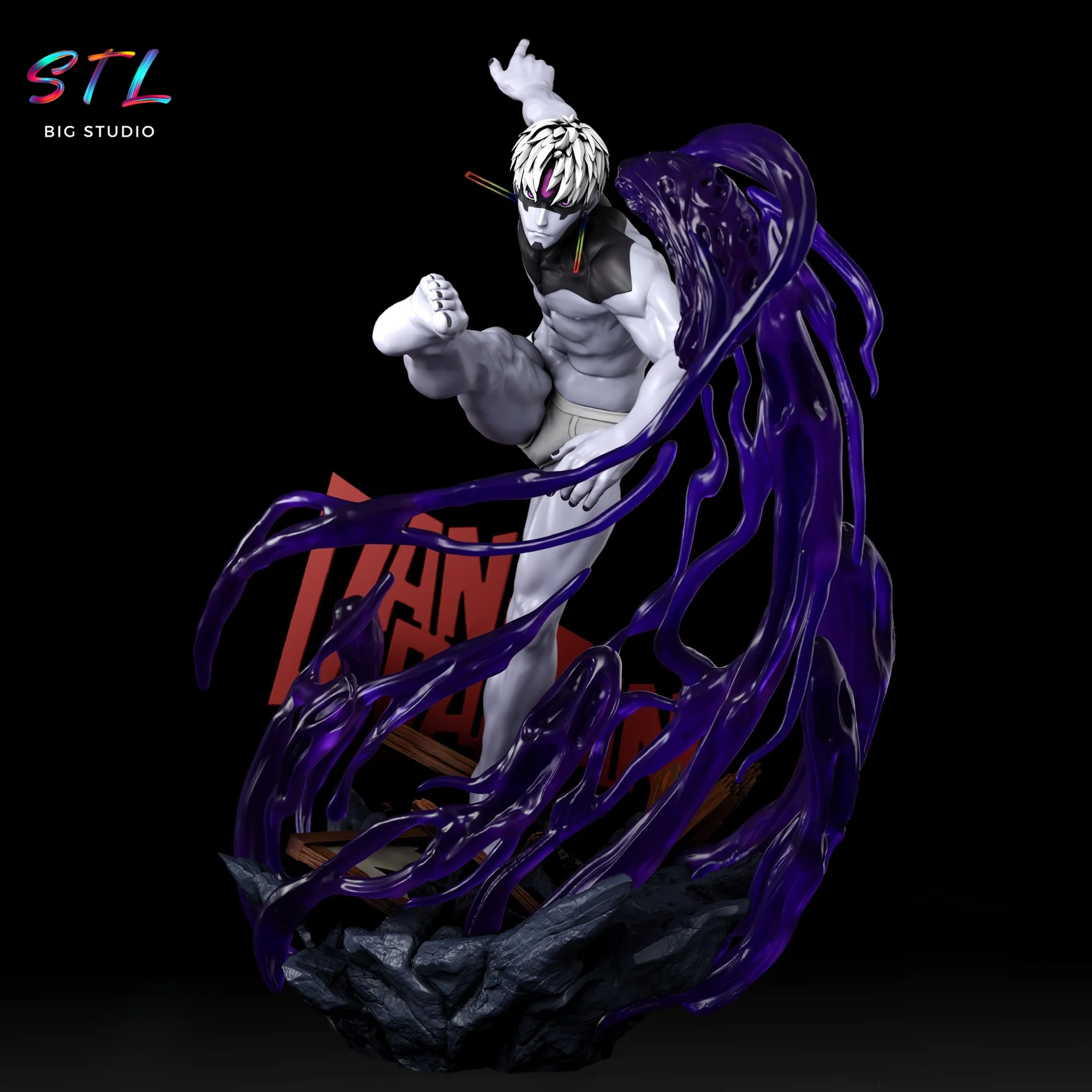 In DanDaDan, Jin Enjoji goes from being an impulsive and charismatic character to becoming the vessel of a dark force that distorts his body and energy. This Evil Eye STL for 3D printing captures that exact moment of loss of control: an extreme pose, charged with aggression, with a composition that conveys imbalance, tension, and constant threat, reflecting the chaotic nature of the spirit that possesses him.