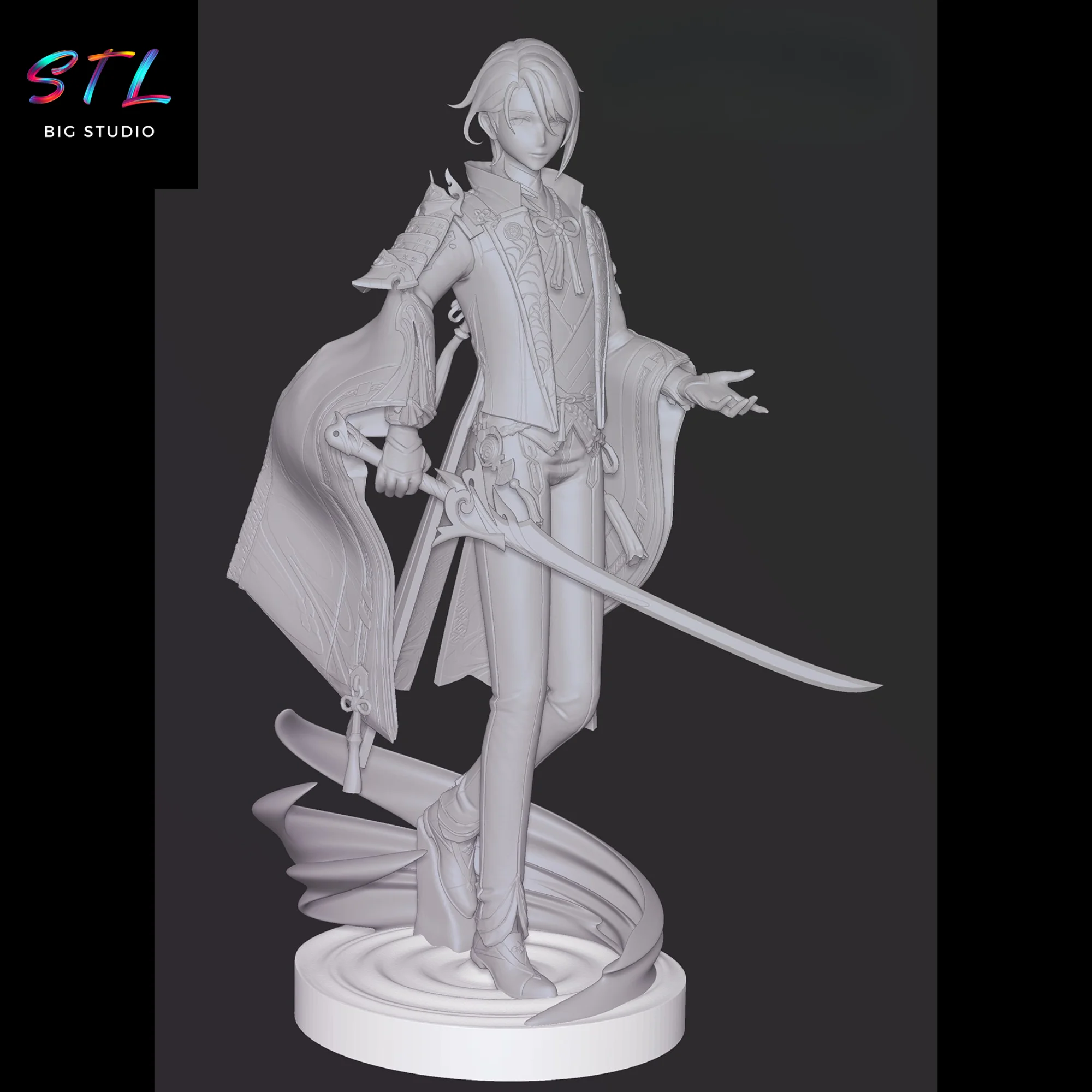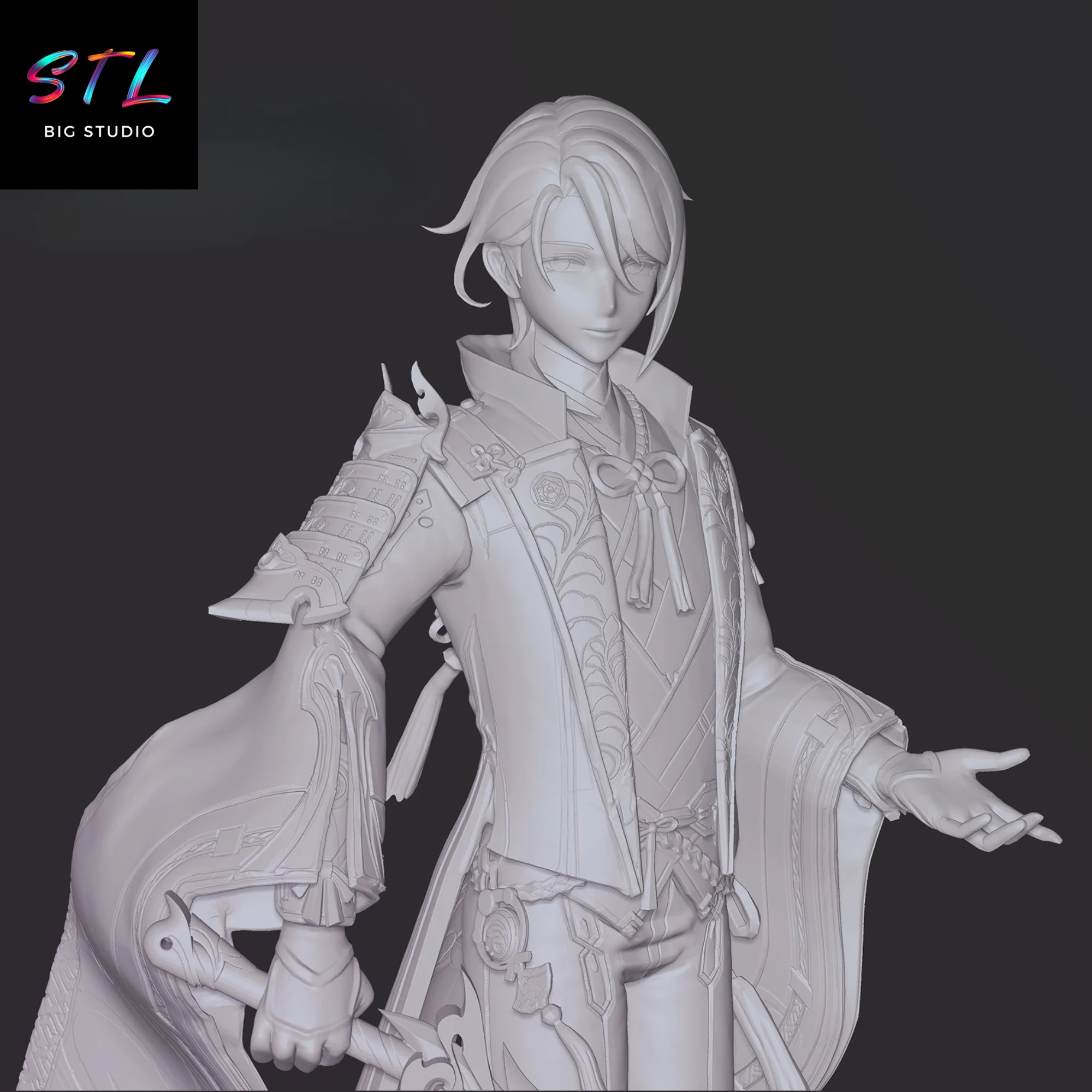 - Detailed STL representation of Kamisato Ayato, an iconic character from Genshin Impact.