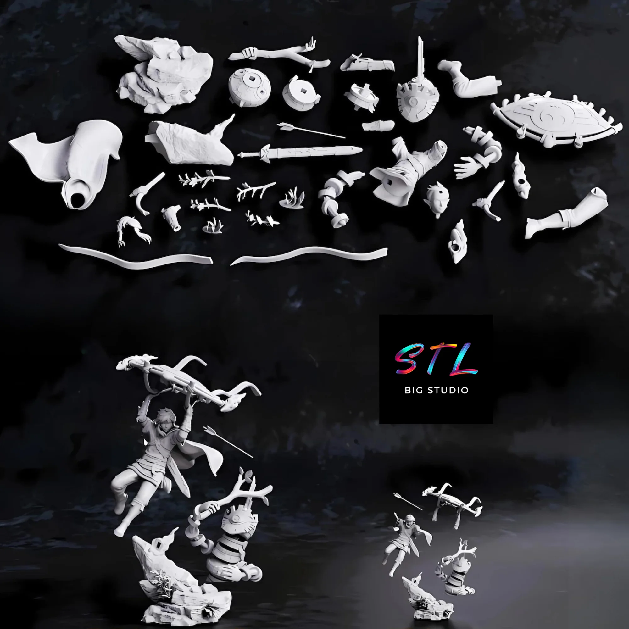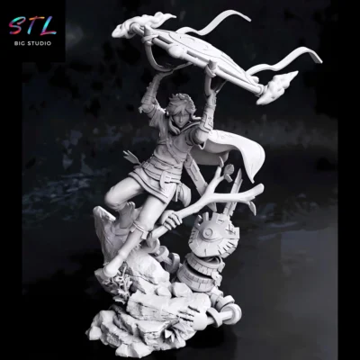This 3D model of Link does more than represent an iconic character: it captures the essence of the Zelda universe. The vertical composition, the firm gesture, and the interaction with the base create a clear visual narrative, evoking exploration, ancient challenges, and the constant struggle against forces that threaten Hyrule. Every angle of the STL design conveys action, epic scale, and a connection with both nature and the technology of the world he travels through.