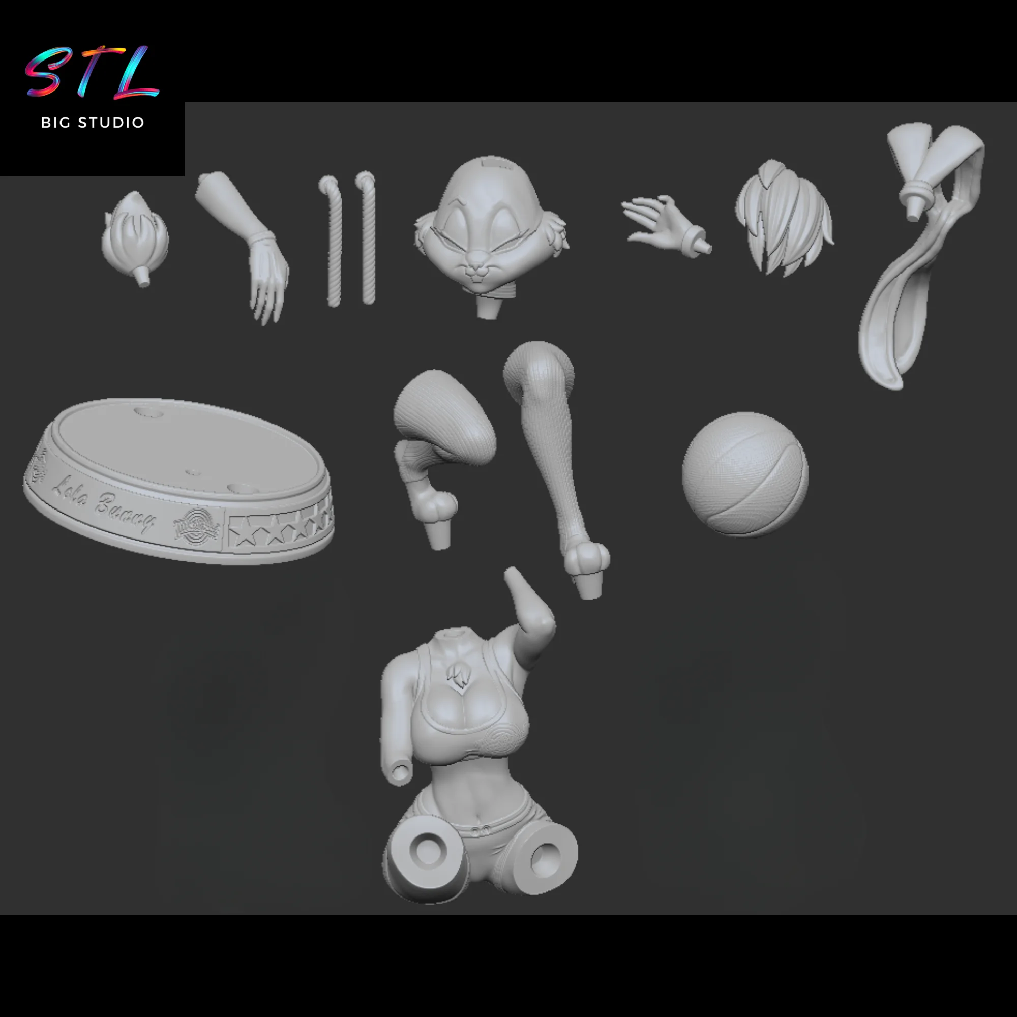 - STL figure of Lola Bunny in a dynamic basketball pose.