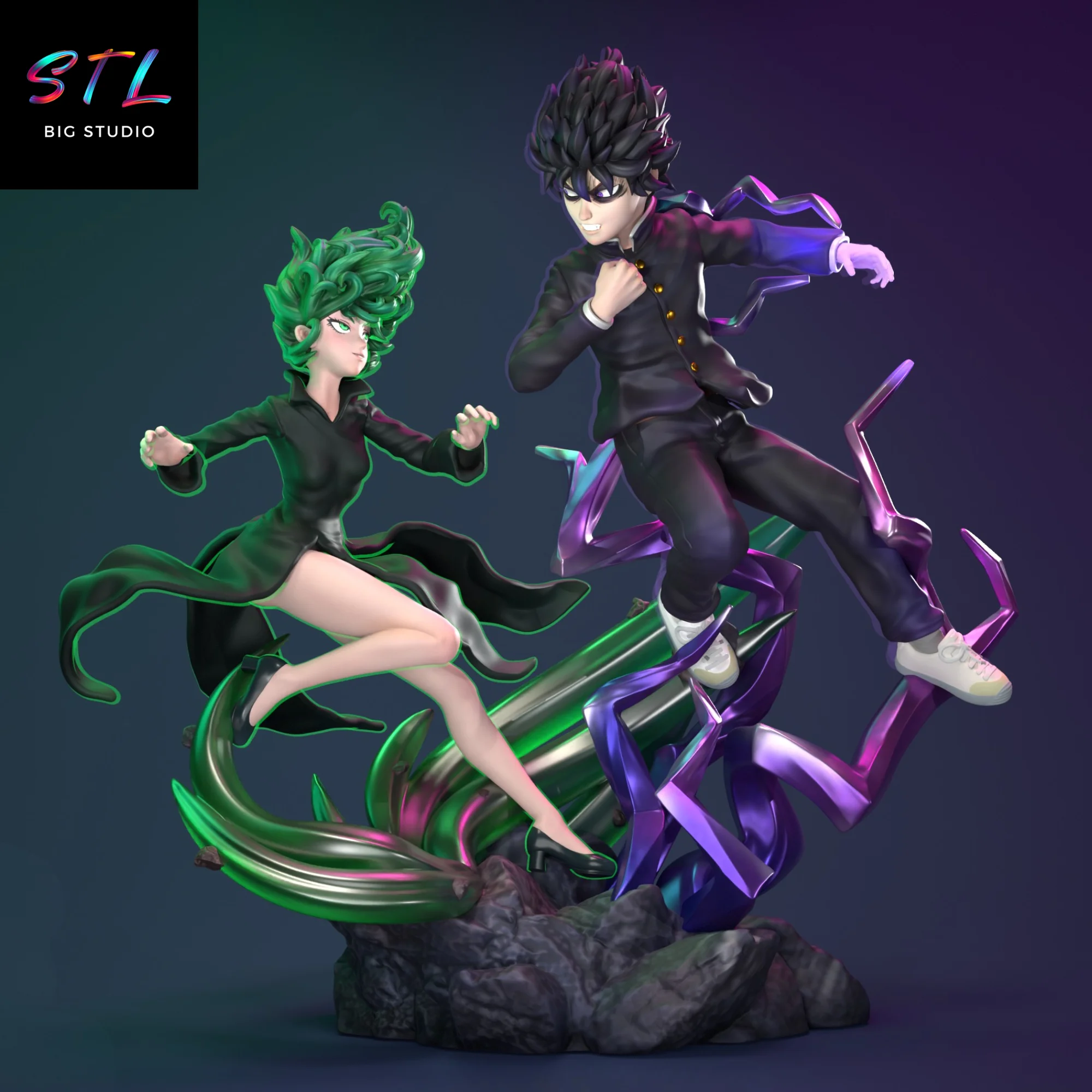 Tatsumaki vs Mob Psycho STL Diorama for 3D Printing
