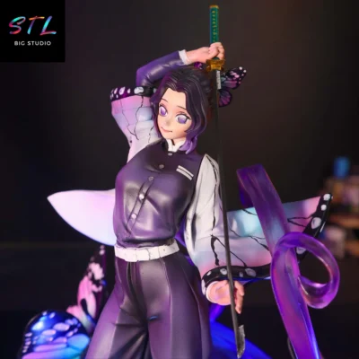 La composición destaca por su sensación de movimiento: Shinobu aparece elevada sobre una base de energía fluida, rodeada de mariposas que refuerzan su identidad y su simbolismo. Es una pieza STL que no solo “muestra” al personaje, sino que lo cuenta: su forma de combatir con precisión, su sonrisa serena, y esa dualidad entre belleza y peligro que la convirtió en una favorita absoluta de la serie.