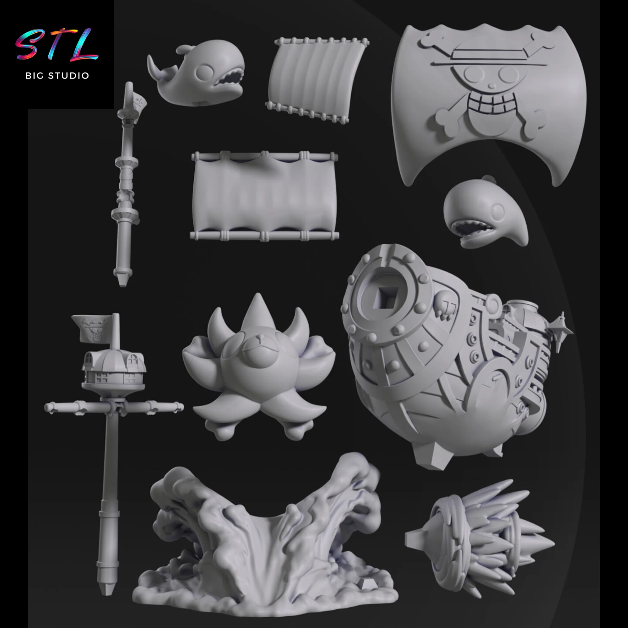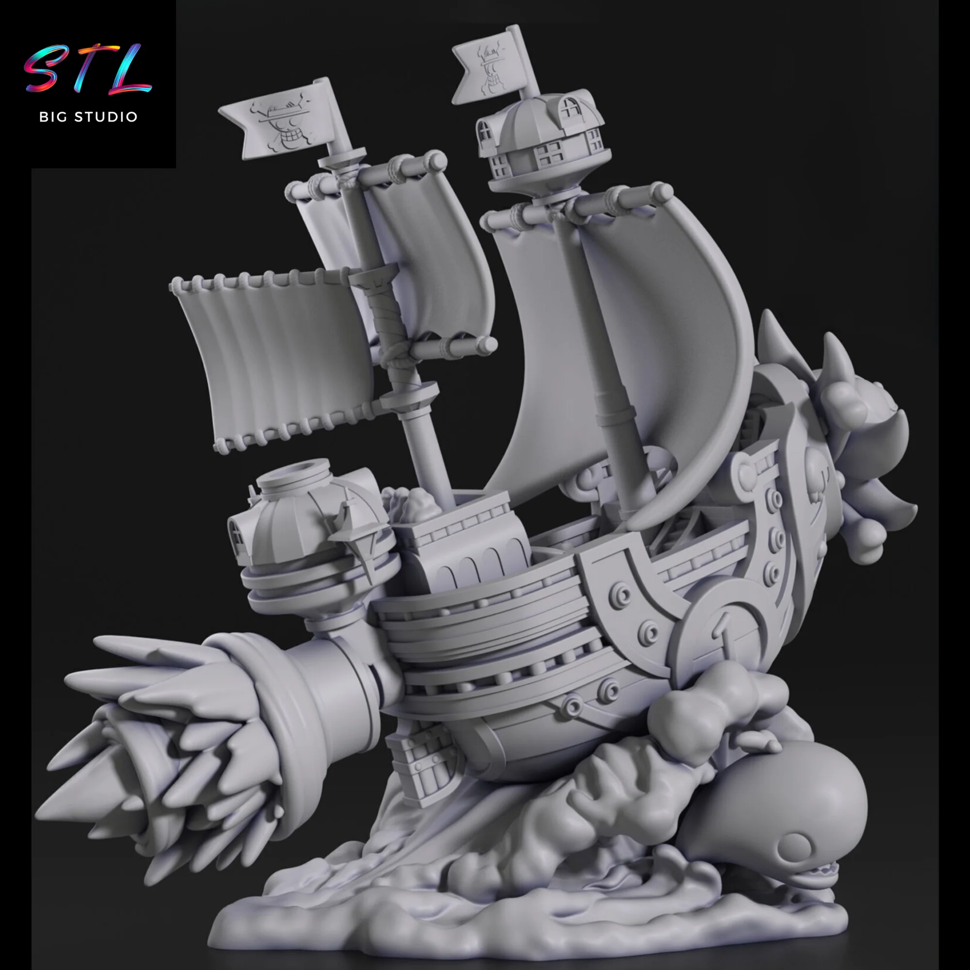 El modelo STL del Thousand Sunny está dividido en múltiples piezas que permiten una impresión 3D limpia y precisa, ideal tanto para pintores como para coleccionistas que buscan una figura impresionante y llena de personalidad.